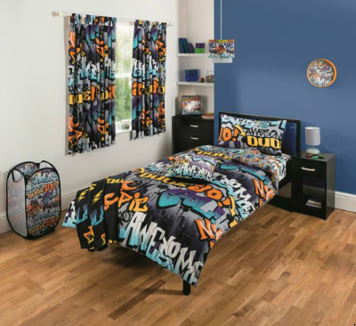 Graffiti decorating ideas for a very cool teen bedroom.
